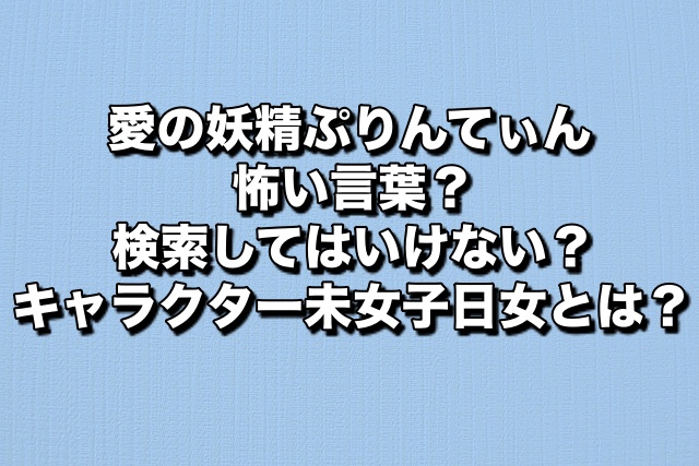 愛の妖精ぷりんてぃん怖い言葉?検索してはいけない?キャラクター未女子日女とは? PC・ガジェット X Facebook はてブ Pocket LINE 2022.07.01 愛の妖精ぷりんてぃんを知っていますか?未女子日女さんが考案したキャラクターのことです。一時期、検索してはいけない言葉として話題になりました。 なぜ、検索してはいけない言葉になってしまったのか検証していきたいと思います。 次のページは「そもそも愛の妖精ぷりんてぃんとは?」 次へ 次のページは「そもそも愛の妖精ぷりんてぃんとは?」 123